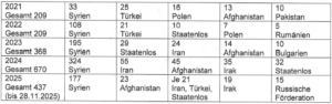 Das Ergebnis der Anfrage zeigt, dass mit Einführung der Turboeinbürgerung (nach 3 Jahren) am 27.06.2024 die Anzahl der Einbürgerungen rapide zunahm. Dabei fällt auf, dass gerade die Einbürgerungen aus islamischen Herkunftsländern überproportional vertreten sind.
